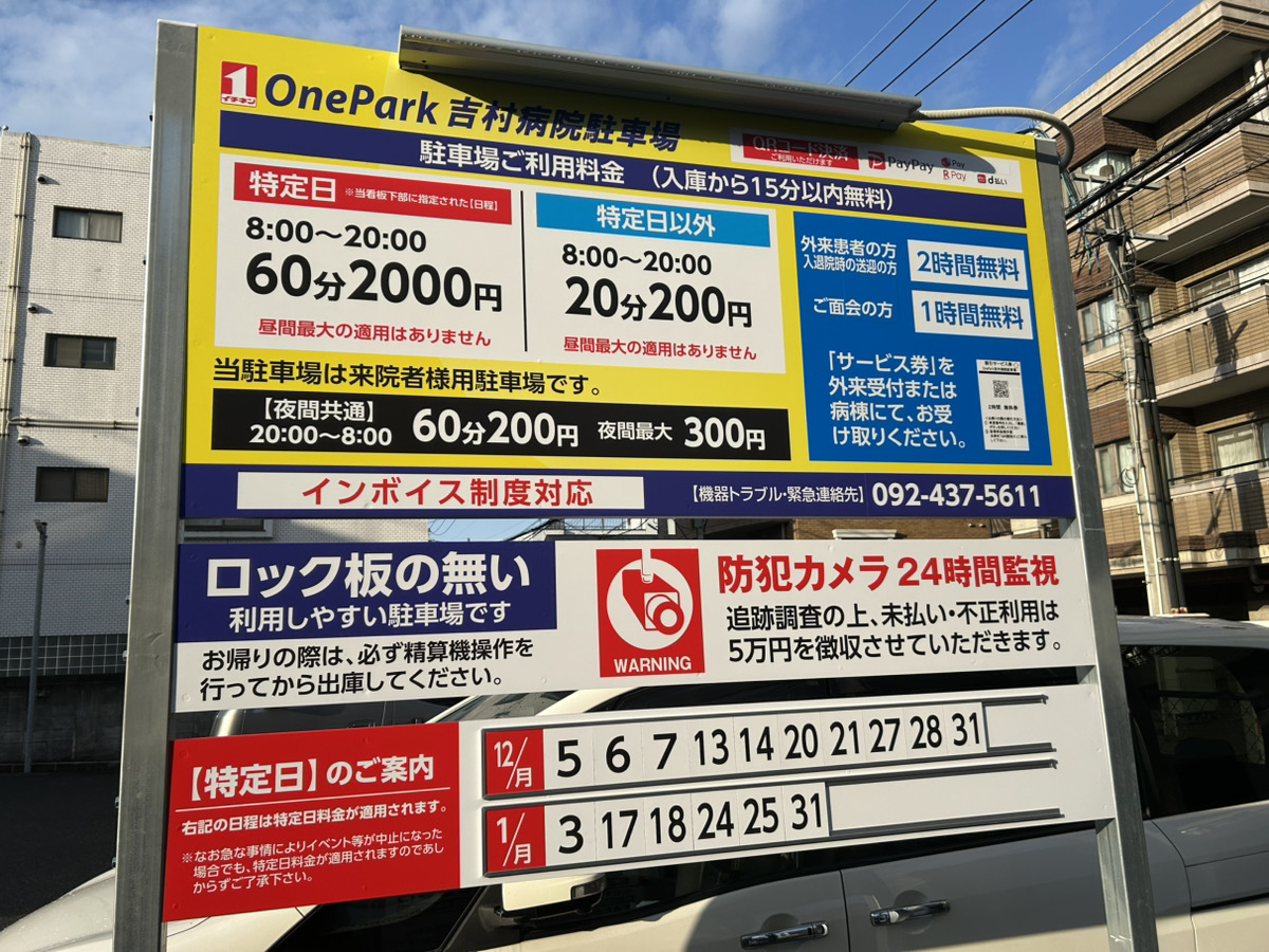 特定日の対象日については、看板下部の【特定日】のご案内をご確認頂くか、HPの駐車場特定日をご確認下さい。